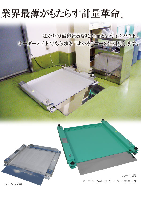 台車ごと載せて計量することが可能な低床式の台はかり。